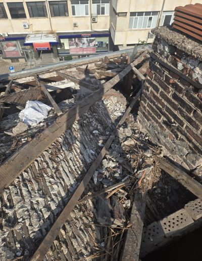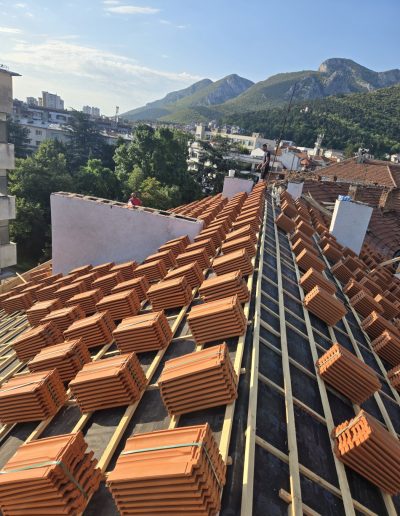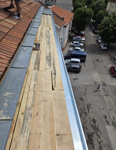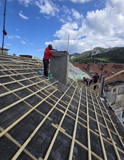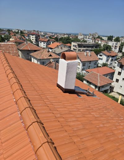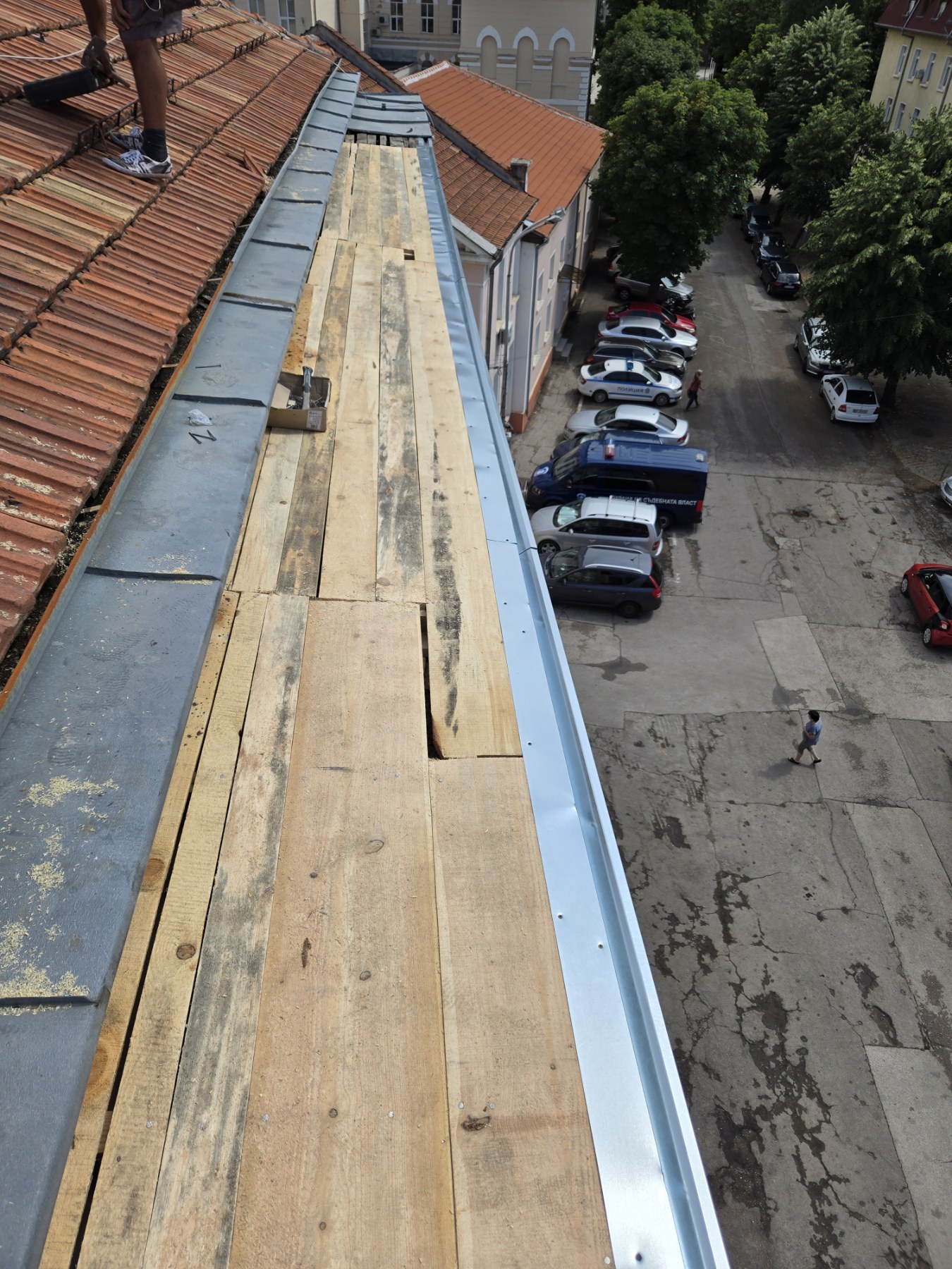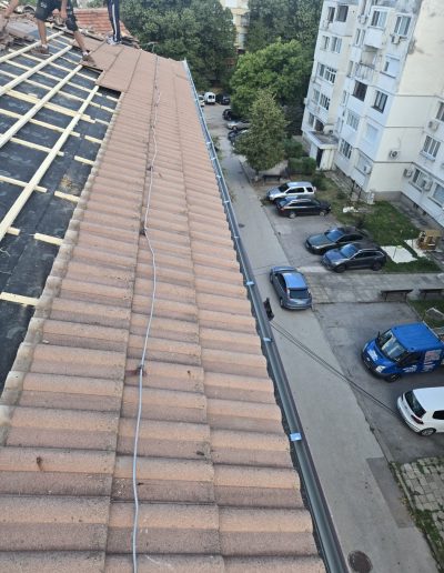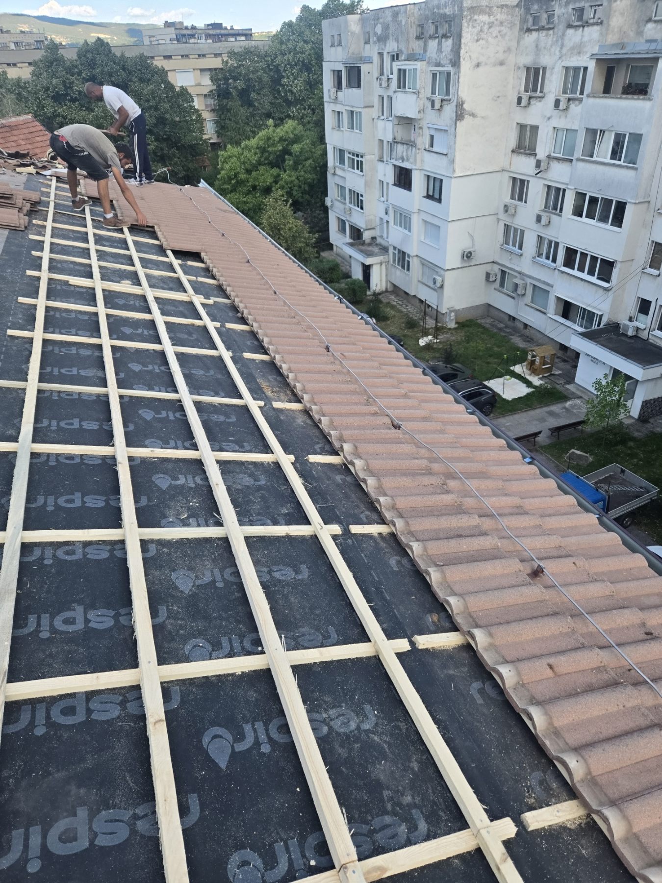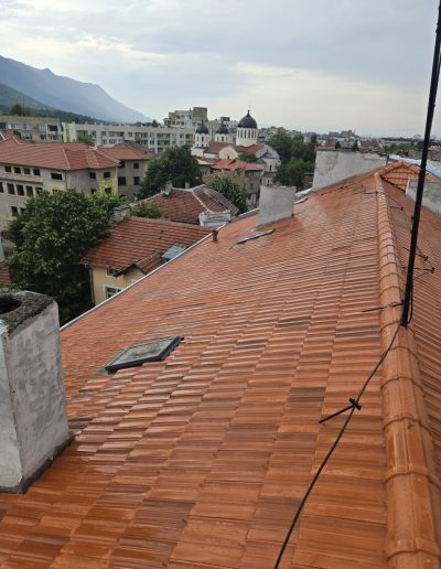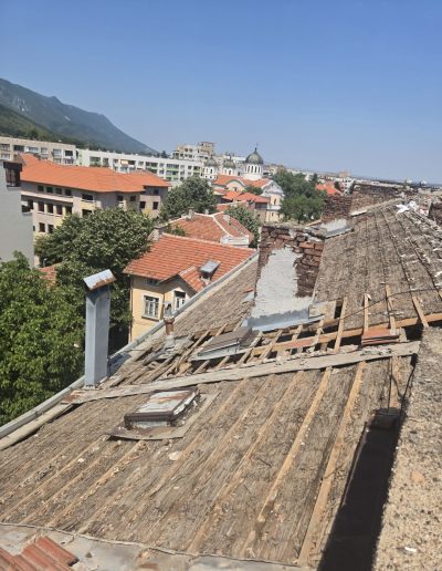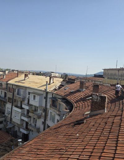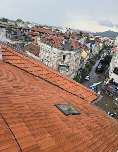 Извършен основен ремонт на покрив на жилищна кооперация в град Враца с повторно използване на съществуващи керемиди.
